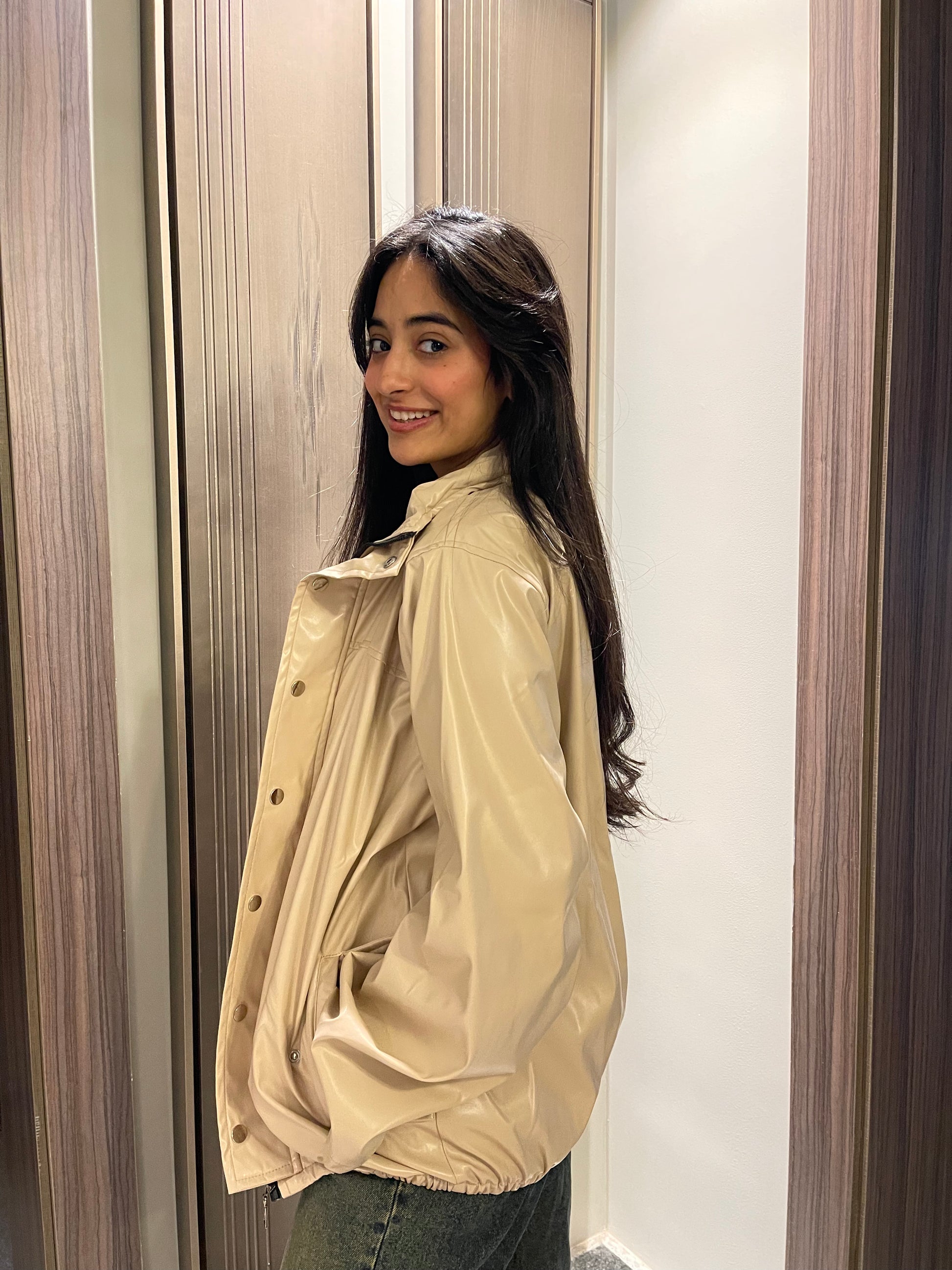 طَيْف جَاكِيتٌ جِلْدِيٌّ شِتَوِيٌّ بِلَمْسَةٍ عَصْرِيَّة قُوَّةٌ هَادِئَةٌ وَتَصْمِيمٌ مُنْسَابٌ يُبْرِزُ حُضُورَكِ بِثِقَة